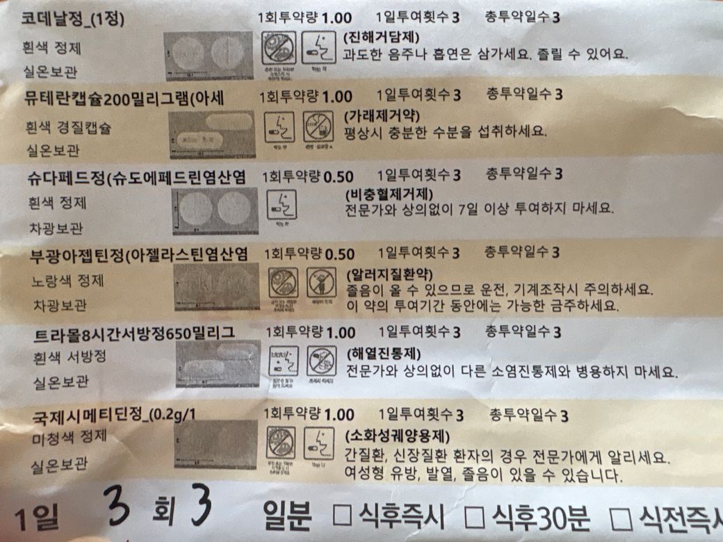 다만 타이레놀 계열도 간에 부담을 주는 약이며, 무좀약(플루코나졸)도 간에 부담을 주는 약입니다.