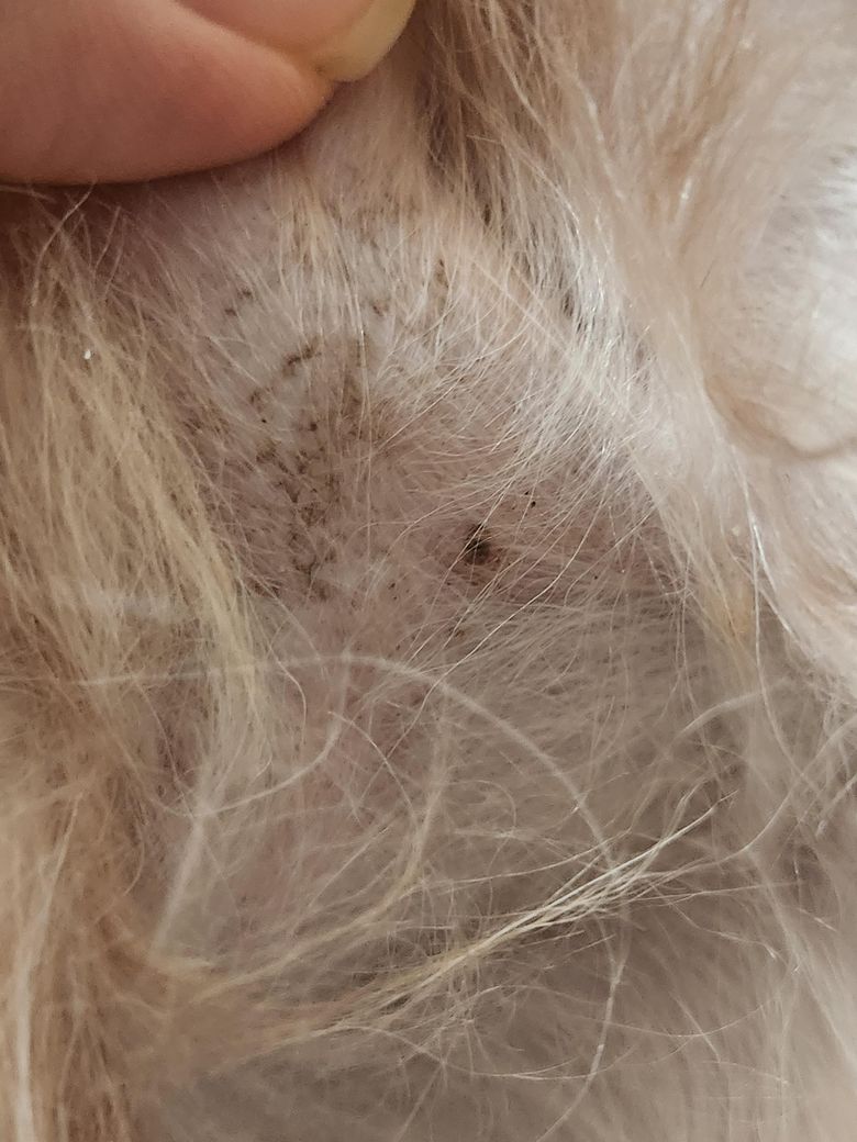 1명 평가안녕하세요. 박창민 수의사입니다. 사진으로는 알 수가 없습니다. 동물 병원에 가셔서 피부 검사를 하시고 원인을 먼저 파악해야 합니다. 감사합니다.