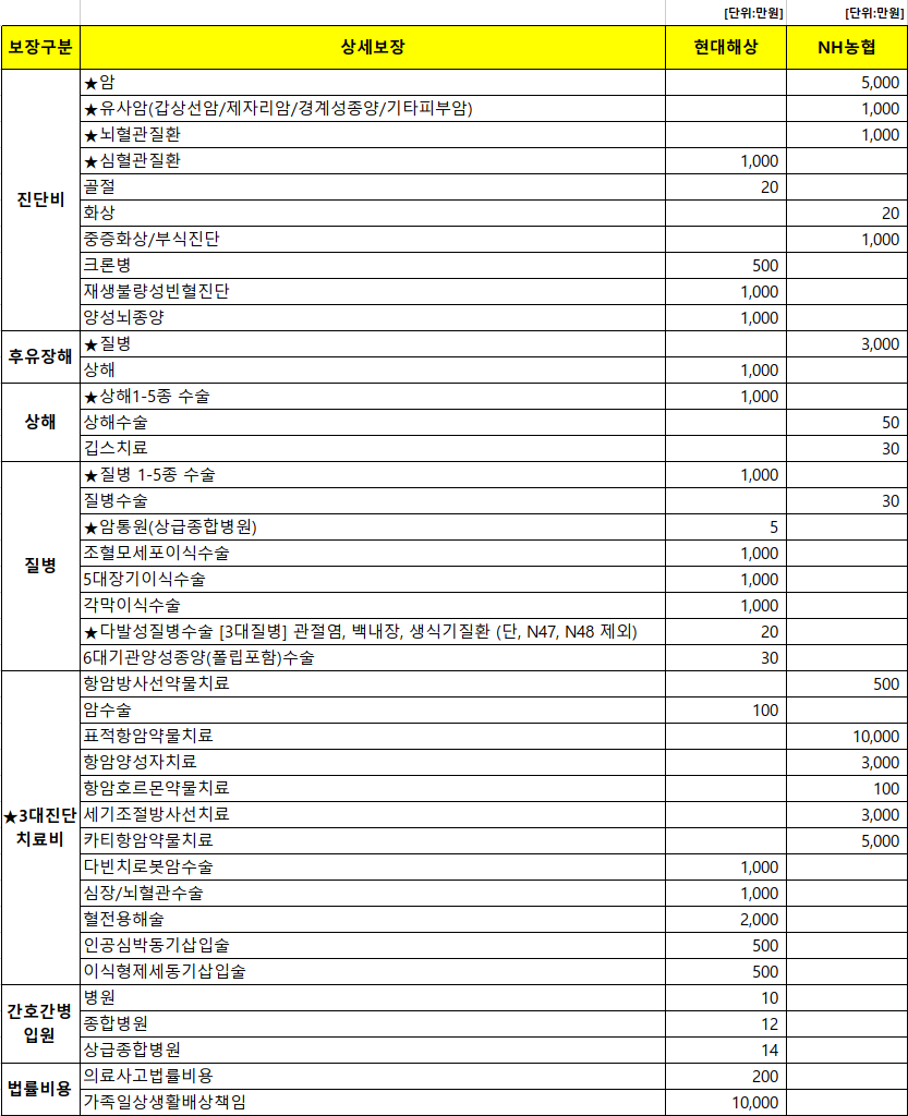 현대해상에서 암진단금을 왜 안넣었는지는 모르겠지만