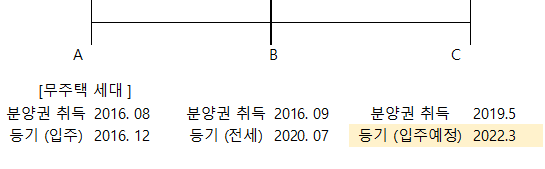 2022년 3월 A아파트 매도 후 C아파트 완공 본인 입주예정