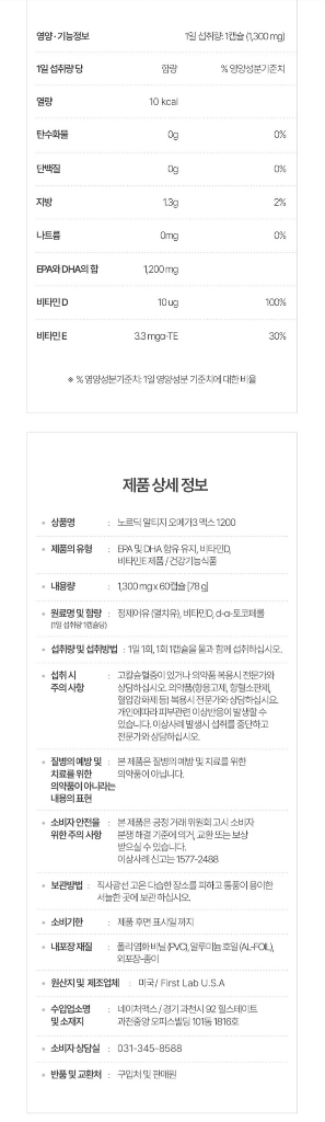 EPA와 DHA의 합이 1200mg이고, 알티지 공법으로 추출한 오메가3라면 순도가 충분히 높을 것으로 보입니다.