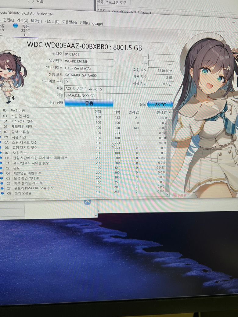 안녕하세요 건강상태가 좋음이고 밑에 목록에서도 전부다 파란색이며 좋은 상태의 하드디스크입니다 아무이상이없어 보입니다 안심하셔도됩니다.
