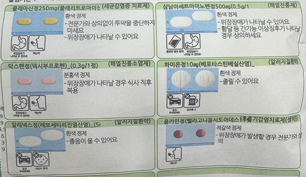감기약입니다. 깜빡하고 당시에 안 여쭤봐서 그런데 이중에서 이소티논과 함께 복용하면 부작용이 생긴다거나 해서 피해야 하는 약이 있을까요? 답변 감사합니다.