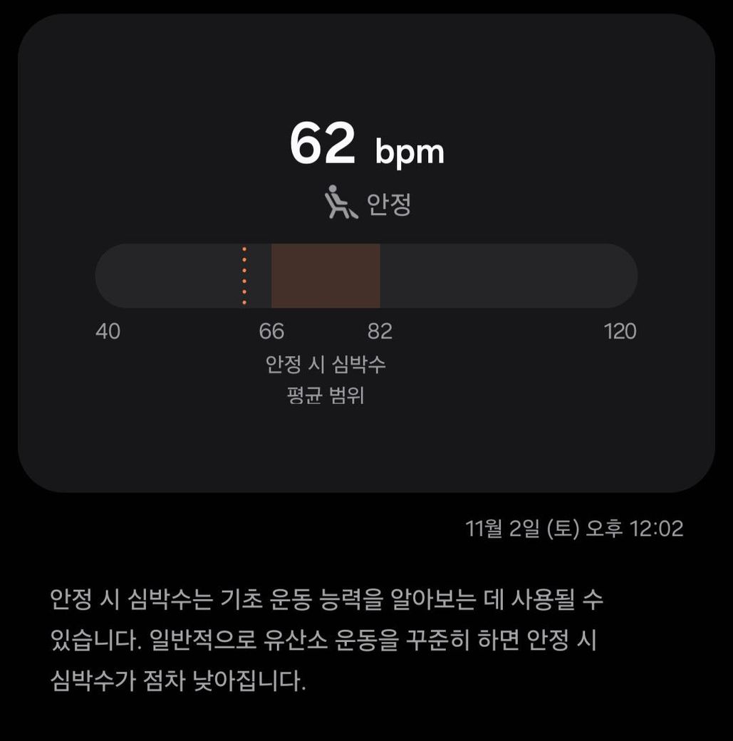 갤럭시워치 측정이 좀 오류가 있는건 알긴 한데, 이럴수도 있나요? 평소 안정시 심박수는 62~68정도입니다 좀 낮을때도 55이하로는 안떨어져봤어요