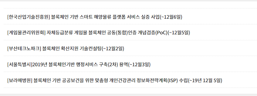그리고 최근에 정부사업도 블록체인으로 많이 공고가 뜨고 있습니다.