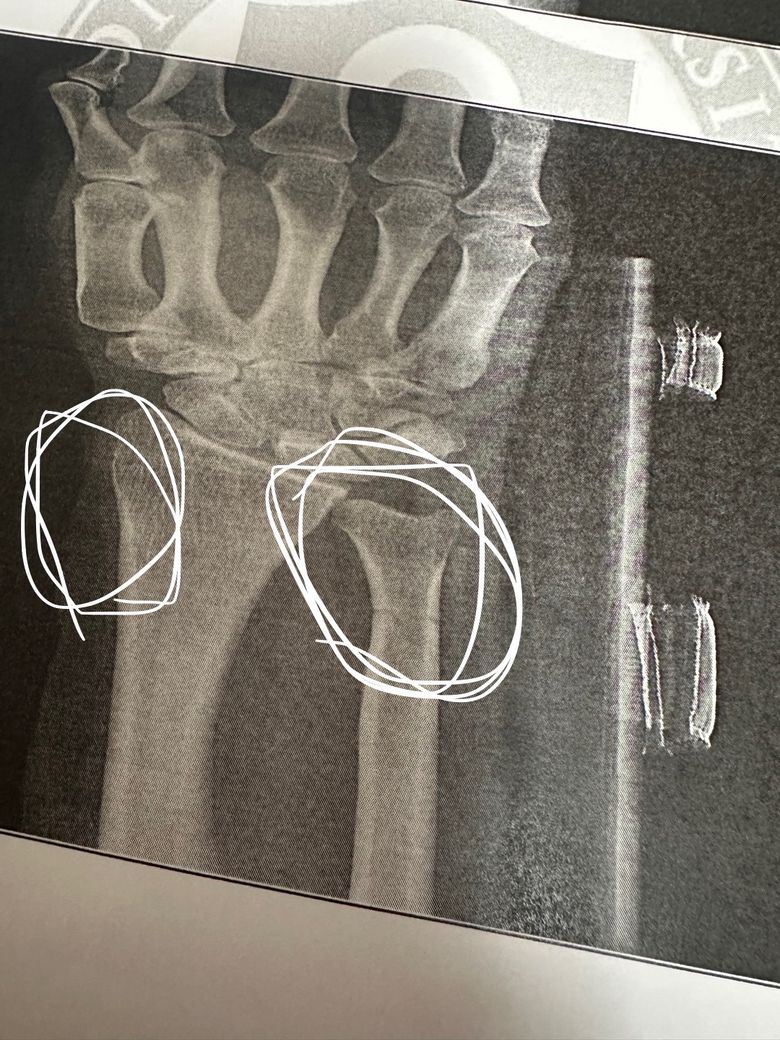 뼈 테두리에는 흰색 선이 있는데, 제 손목 x-ray 보면 잘 안 보인다고 하시면서 실금간 걸 수도 있다고 하시는데, 정말 선이 잘 안 보일까요