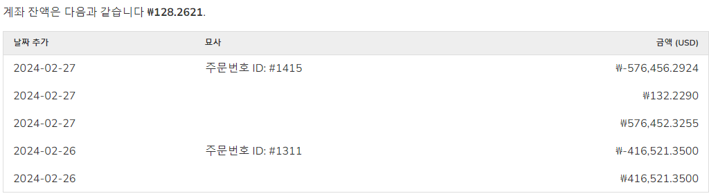 드랍쉬핑을 진행하면서 물건을 매입할때 해외의 고객센터에 연락해 토스계좌를 받아 한화로 금액을 입금을 해주고, 스토어에서 사용가능한 크레딧을 충전시켜주는 시스템입니다., 이때 입금했던 이력과 물건을 매입한 이력으로 영수증과 같은 역할을 해줄 수 가 있나요?, 따로 세금계산서는 발행을 안해서요. 사진처럼 구매이력이 있는데 계좌이체 이력과 같이 첨부하면 영수증처럼 처리가 가능한지 궁금합니다.