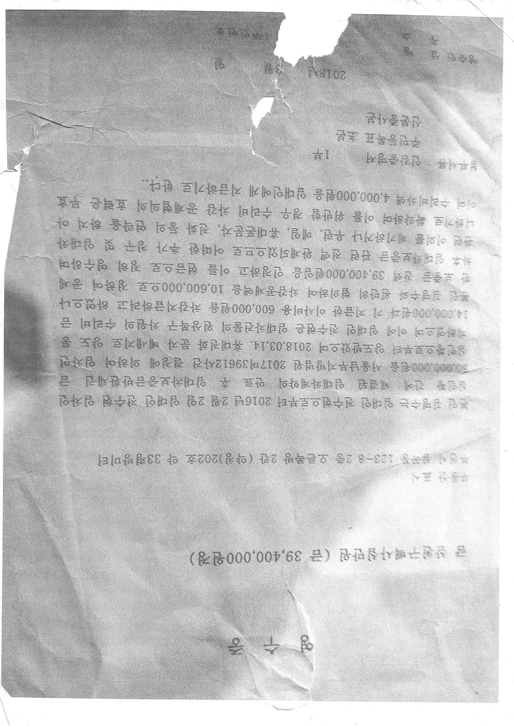 질문하신 내용에 대하여 아래와 같이 답변 드립니다.첨부해주신 문서는 영수증일 뿐, 어떠한 법적 판결문이나 이행 권고 등이 아닙니다.