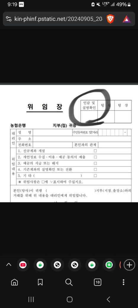 그 칸에는 위임장에 서명한 사람을 확인한 은행 책임자가 마지막으로 도장을 찍을 것입니다.