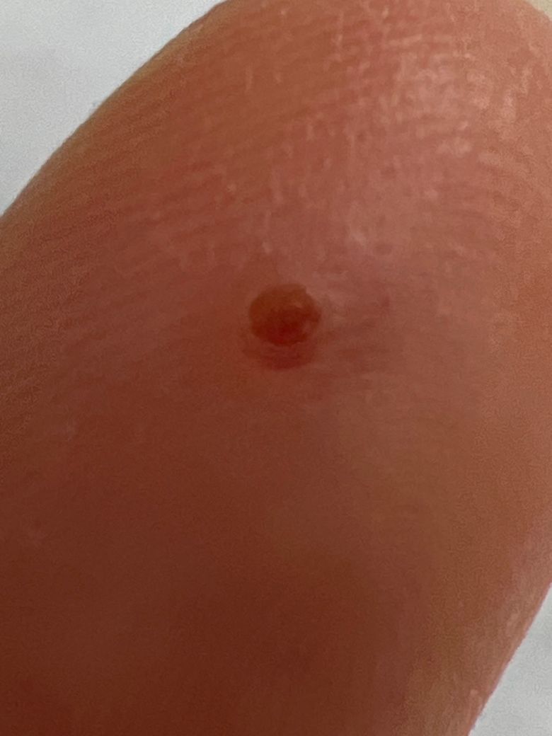 손가락에 구멍난 상처(?)생긴 후 피가 맺힌거 같이 보여요