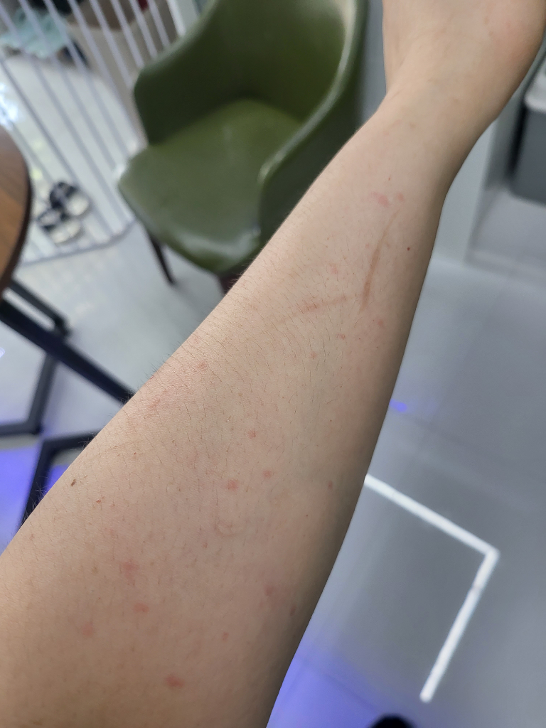 일광알레르기 또는 알레르기 피부염의 가능성이 높기 때문에 가까운 피부과에 내원하시어 정확한 진단 및 항히스타민제 등을 처방받으시는 것을 추천드립니다.