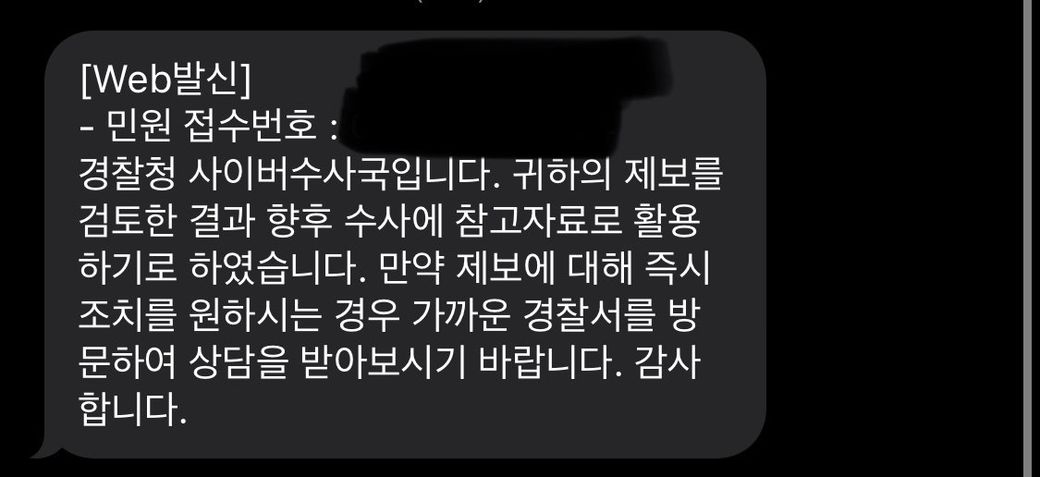 사이버수사대에 제보 후 이 문자의 의미가 뭘까요?