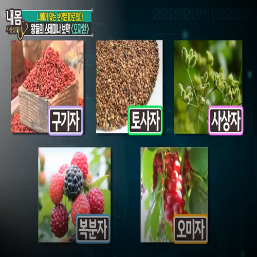 복분자, 구기자, 오미자, 토사자, 사상자등의 다섯가지 약재로 이루어져 있으며