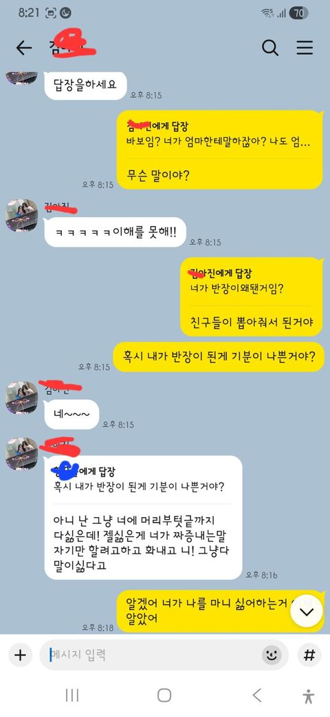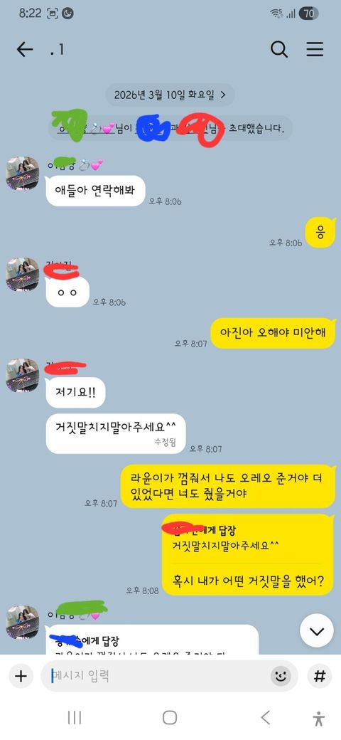 카톡에 언급된 다른 아이들은 이간질로 확인됐습니다.