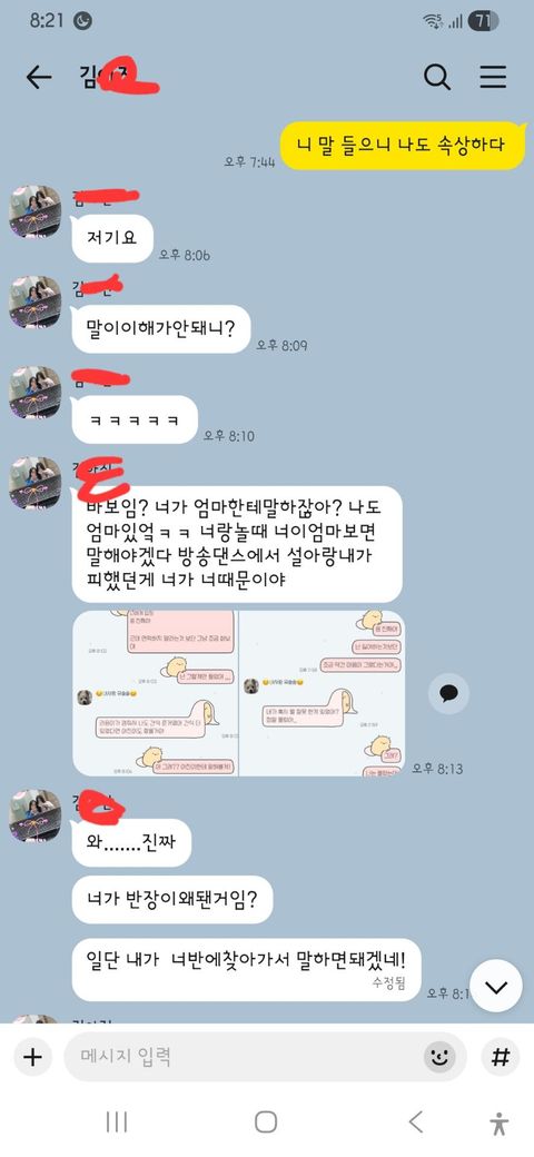 해당 카톡 후 다음날 진짜 반으로 찾아와