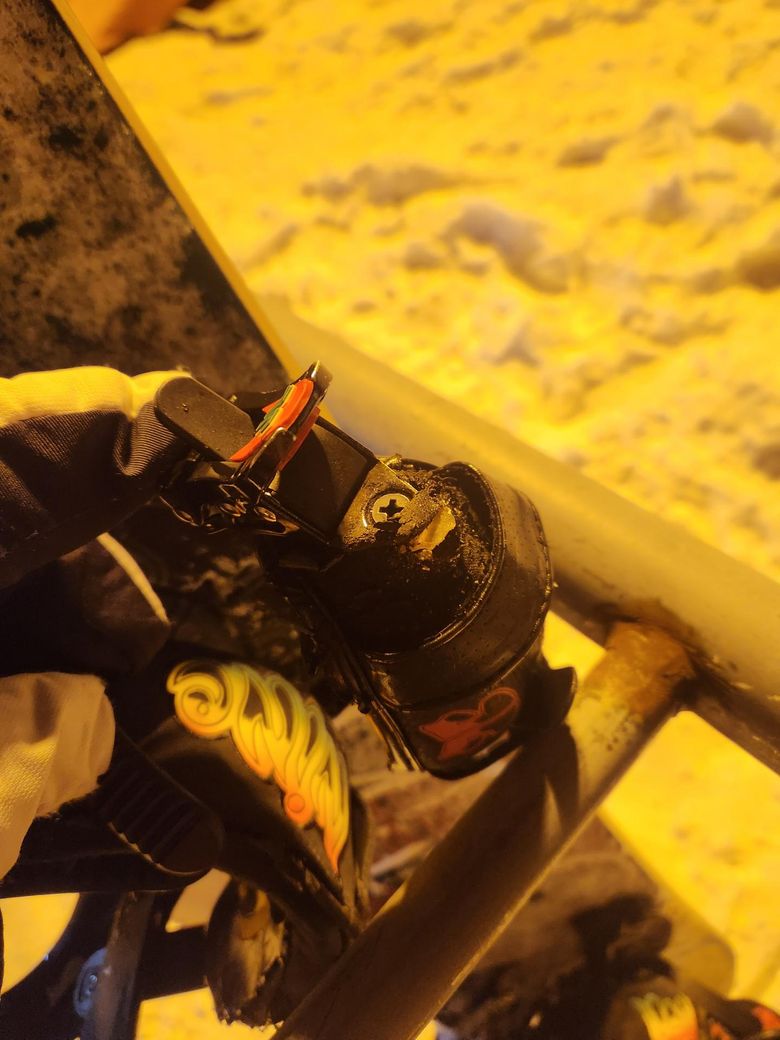 네 안녕하세요 사진이 정확히 안보이지만 바인딩 아닌가요?부츠가 스노우보드에 단단히 고정하는 것을 핵심으로 하는 건데 거기가 스트랩이 떨어진거같아요. 아예 다갈거나 스트랩을 단단히 조여야할거같아요