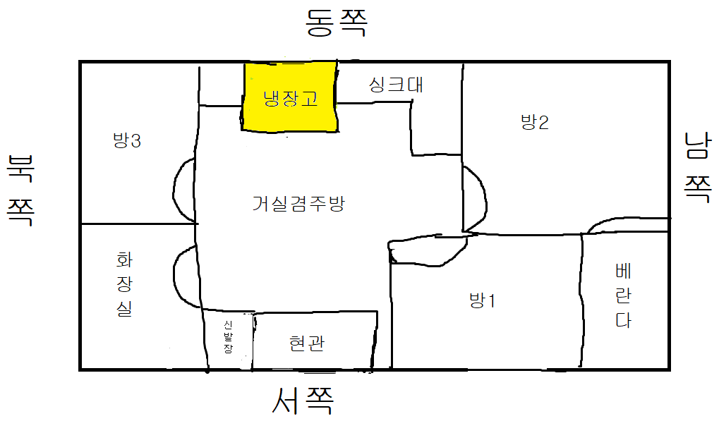 이사가려는집 구조대충 그려봤습니다 동서남북도 추가로 적었구요