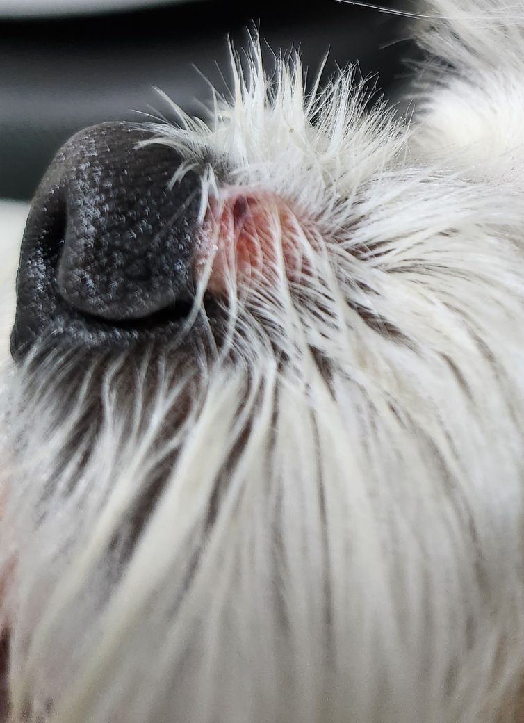 사료나 간식을 먹고나면 얼굴을 소파나 침대에 비비면서 닦는버릇이 있어 끝부분엔 피가 맺혀 있습니다.