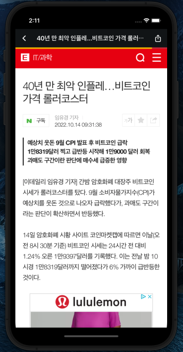 비트코인과 경제 정보를 전달하는 어플인데,
