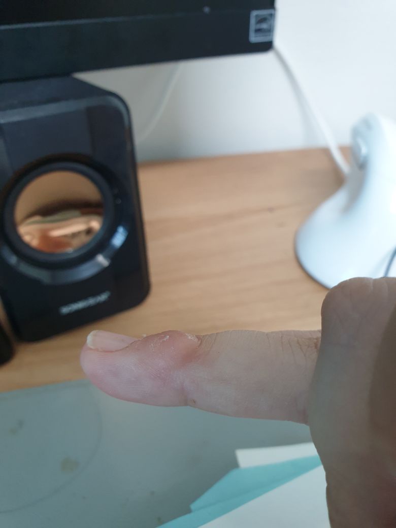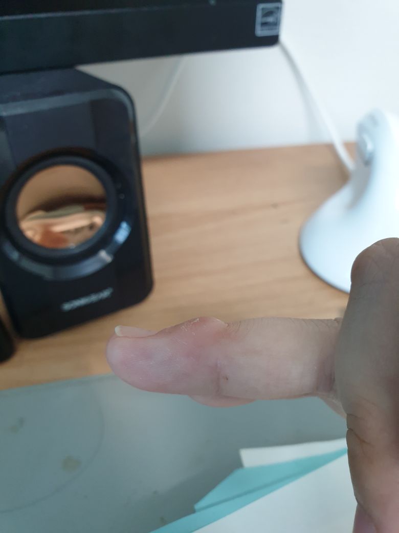손가락에 연필 굳은 살이 존재했는데 어느 날 해당 부위가 간지러워서 보니까 안쪽에 공기라도 채워진 것처럼 부풀어올랐습니다. 바늘로 표면을 만졌을땐 둔한 감각이 느껴지긴 한데 근처 피부과 의사 선생님도 정확한 원인을 모르시는 것 같아 여기 올려봅니다. 그냥 굳은 살인건가요?