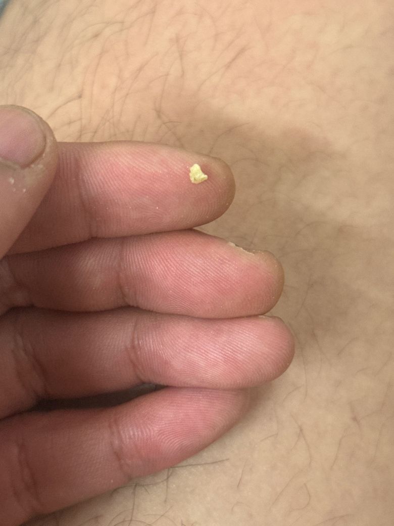 옆구리 왼쪽이 너무 아파서 요로결석인줄 알았는데 요로결석인줄은 알았는데 돌이 아니라 만지면 사르르 부서지고 점토같이 생긴게 나오내요 돌같이 딱딱한건 아닌데 뭘까요