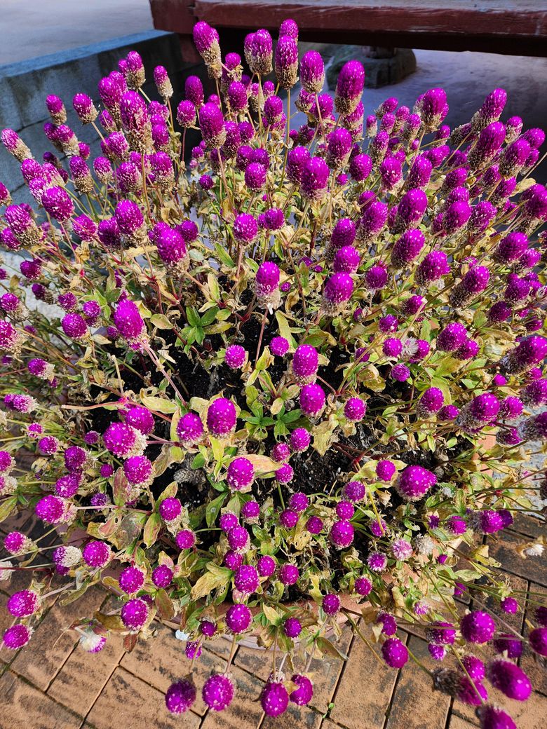 천일홍이라는 초화류입니다. 단년생 초화류입니다. 꽃말은 매혹, 변하지 않음, 변하지않는 사랑입니다. 개화시기는 6월입니다.