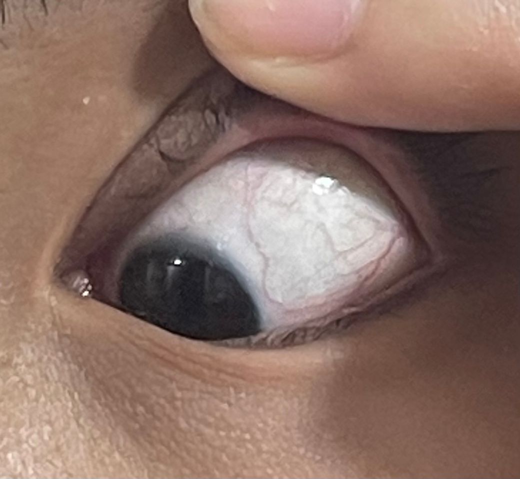 특별한 이상이 보이지는 않고 결막 충혈 정도 관찰되는 것 같습니다. 요즘에 송화 가루때문에 눈이 뻑뻑하고 뭔가 막이 껴 있는 느낌이 드실 수도 있어요. 가렵지 않다면 물이나 인공 눈물로 자주 씻어 주셔도 충분할 겁니다.