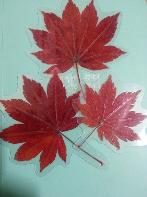 그걸 코팅지에 넣어 코팅해서 단풍 모양따라 잘라서 책갈피로 쓰시면 너무 좋아요