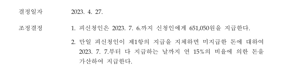 조정결정에서 변제기한을 설정하고 그 이후의 지연손해금에 대해서도