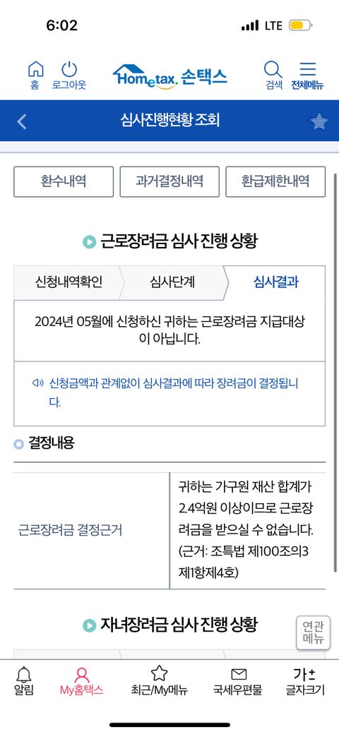 근로장려금 심사탈락했는데 이유가 궁금합니다