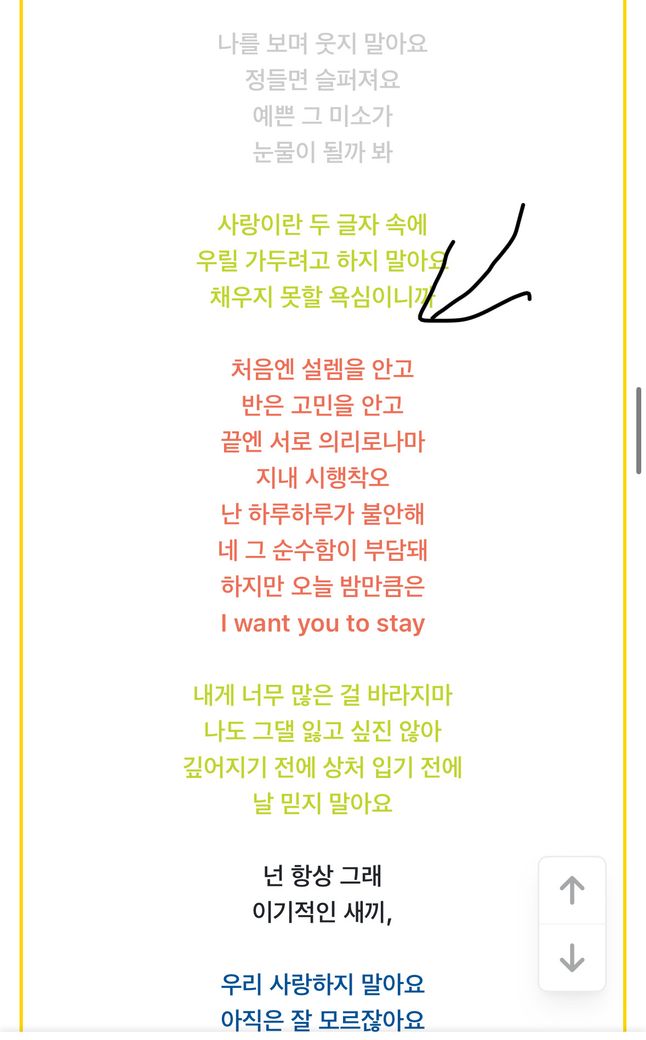 제가 표시해둔 곳에서 GD가 추임새로 뭐라고 하는지 궁금합니다! 구글이나 가사 사이트에서 검색해봐도 안 나오네요.. ㅠ