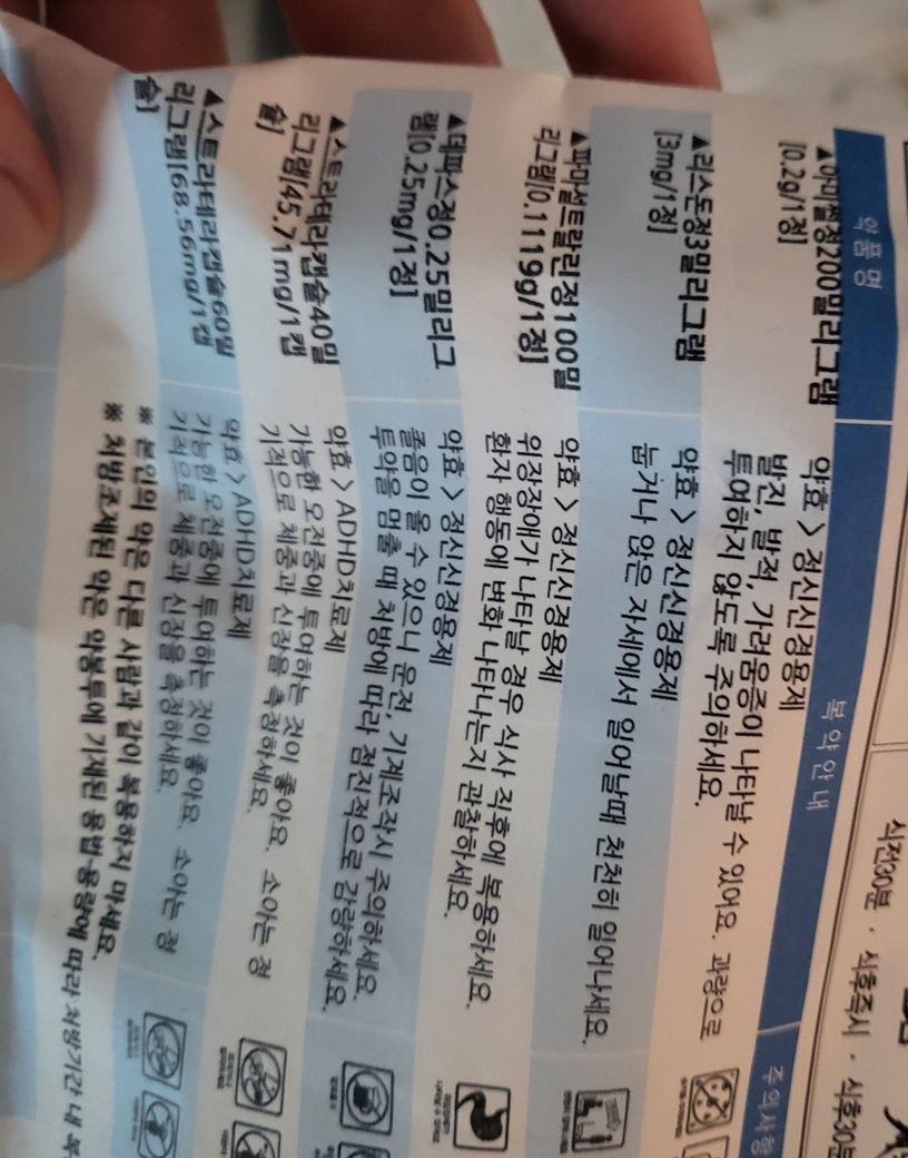 다이옥타헤드랄 스멕타이트 성분의 지사제는 정신과약물의 흡수율을 감소시키므로 1시간 이상 간격을 둬야합니다