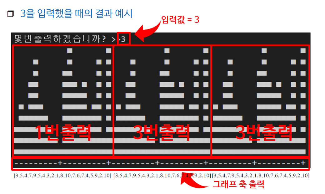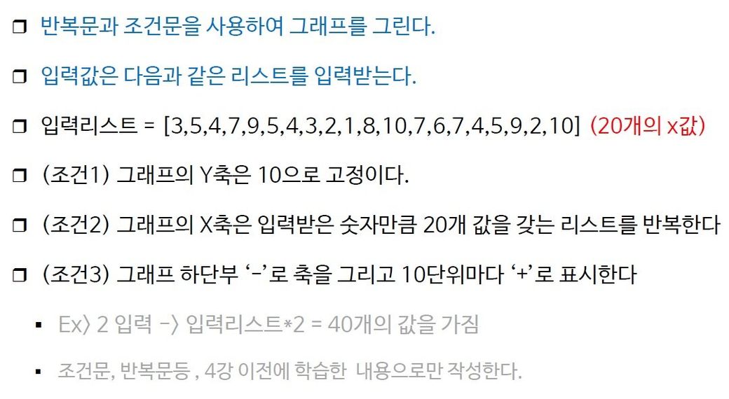 리스트로 세로 막대 그래프를 형성하라 하네요..