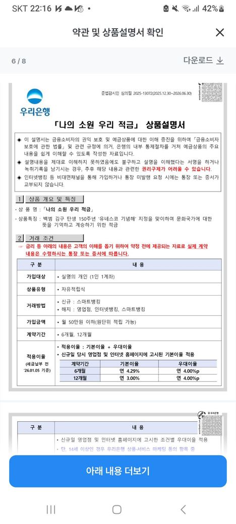 우리은행 소원 적금 1만원 가입을 했습니다.