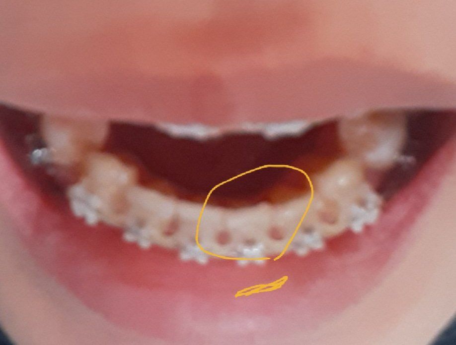 그렇기 때문에 교정치료가 완료된 이후에는 앞니 뒤쪽으로 고정식 유지장치를 부착하여 앞니가 틀어지는 것을 예방합니다.