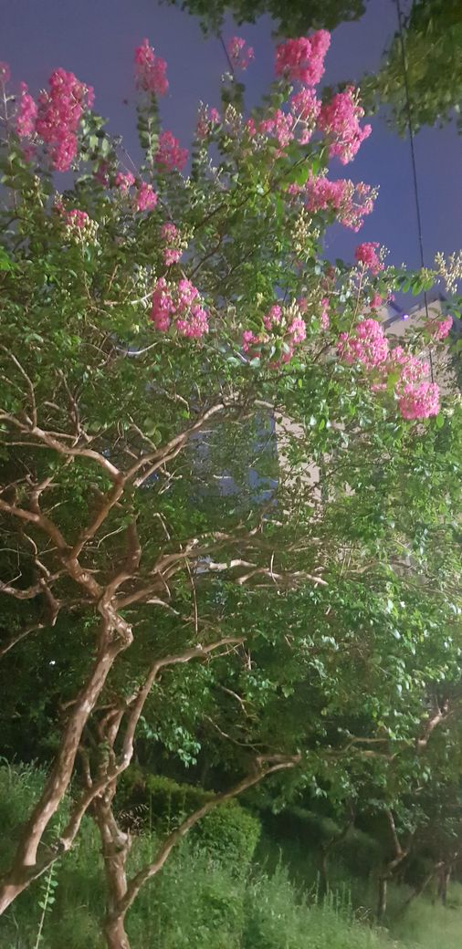 이 꽃나무의 아름다운 꽃이 퇴근길의 풍경을 더욱 특별하게 만들어주고 있음에 틀림없습니다. ^^2명 평가사진이 많이 흔들려서 판단이 어렵지만, 배롱나무가 아닌가 싶습니다.