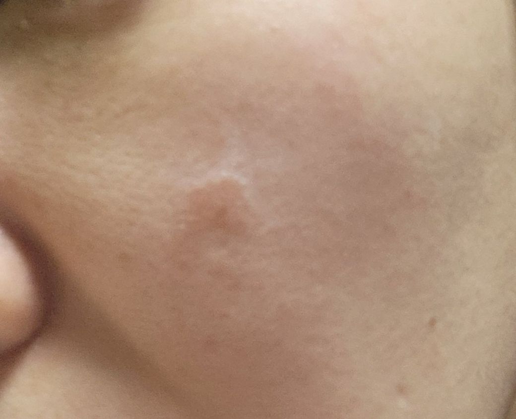 볼에 아침에 저렇게 한군데만 뭐가 생겼어요? 아주 살짝 나왔어요 ㅜㅜ 가렵거나 아프진 않아요 악긴 네모모양 색도약간 피부색은 아니고 붉은색도 아니 옅은 검버섯 색상 인것 같기도 하고요 뭘까요?