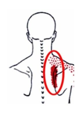 사진에 보이는 부위가 결리고 아픈것은 잘못된 자세로 인한 경추신경통으로 볼수 있습니다 중사각근에서 견갑배신경이 포착되었을때 나타날수 있는 신경통입니다