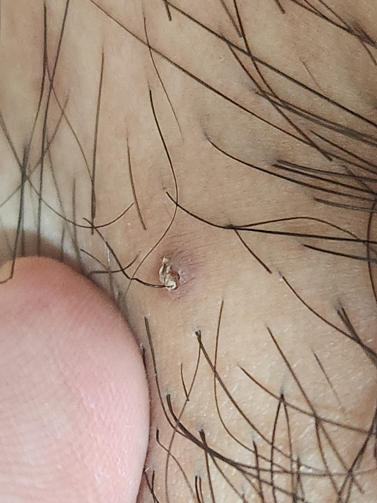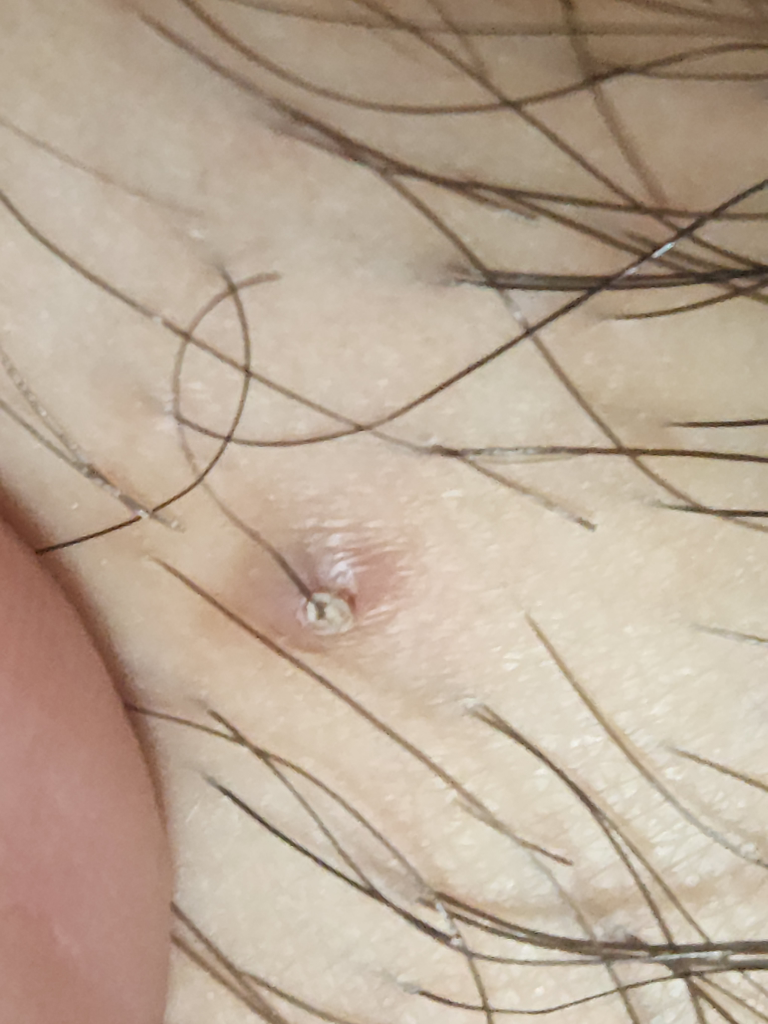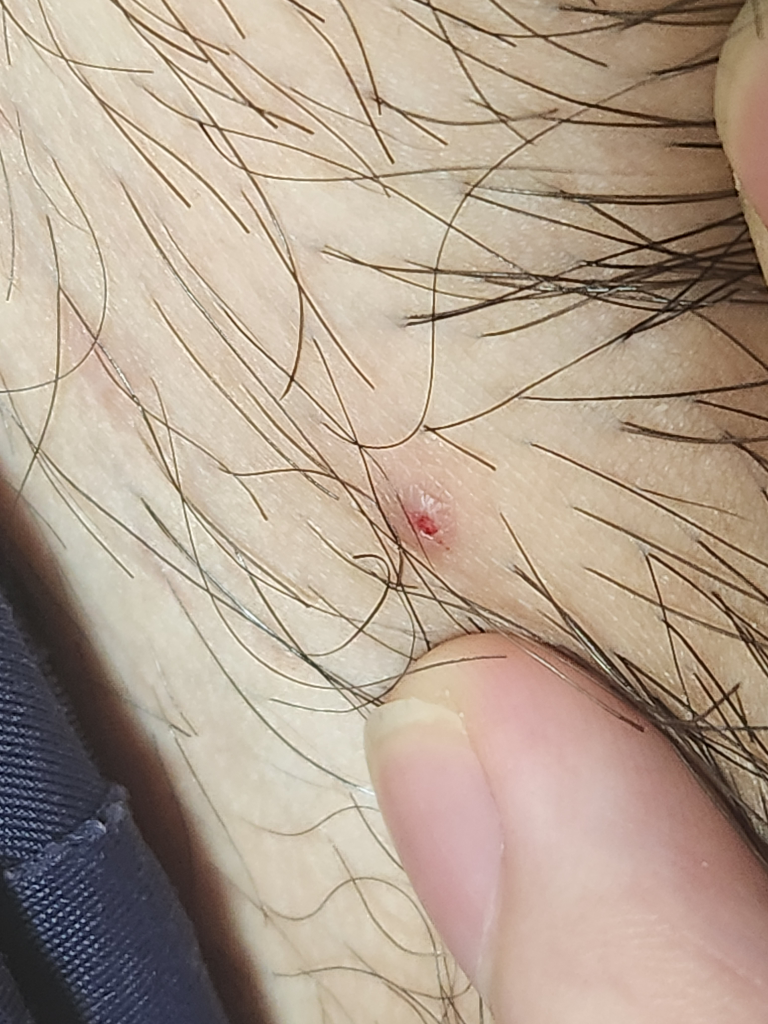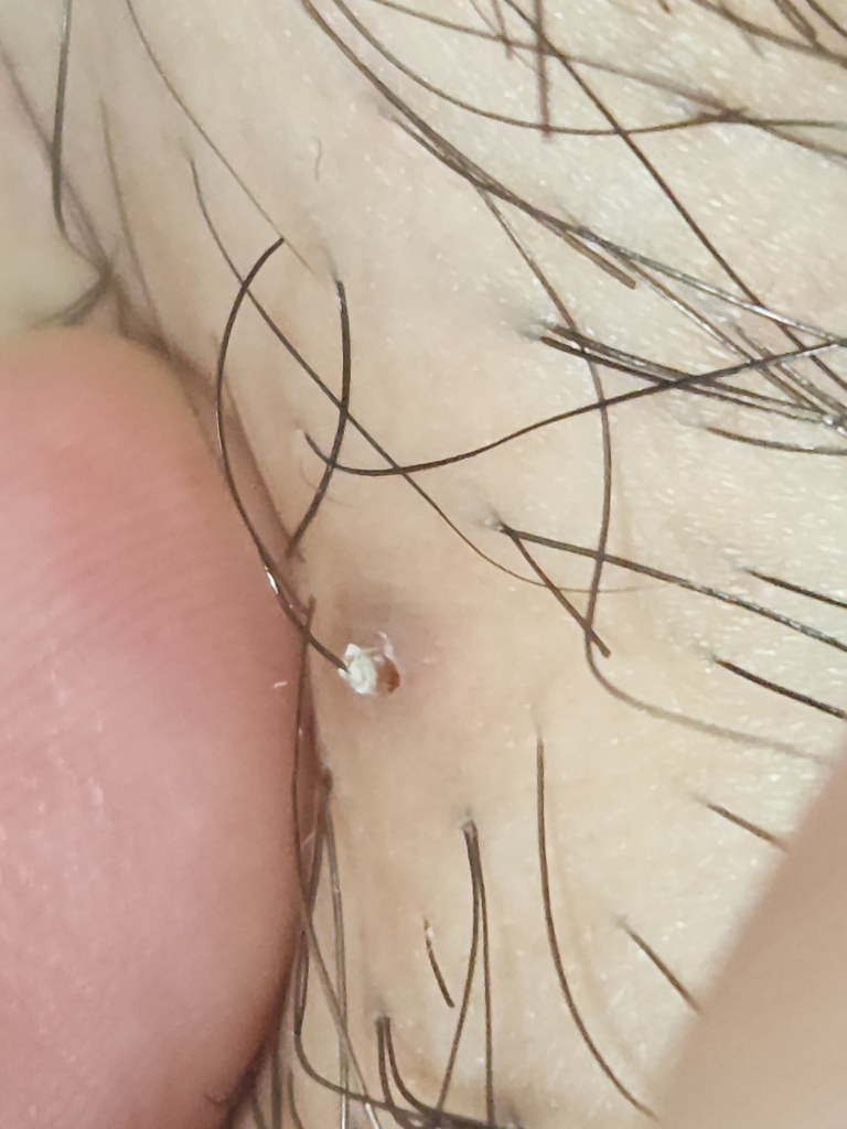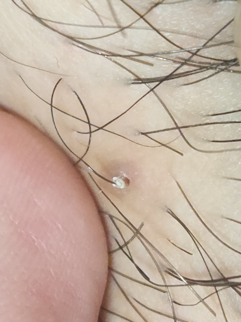 남자고 며칠전 성기 부근에 이상한 모낭염(?)같은 것이 나서 3일 정도 지켜보다가 그 부분의 털을 당겼더니 사진처럼 나왔습니다. 뭘까요?