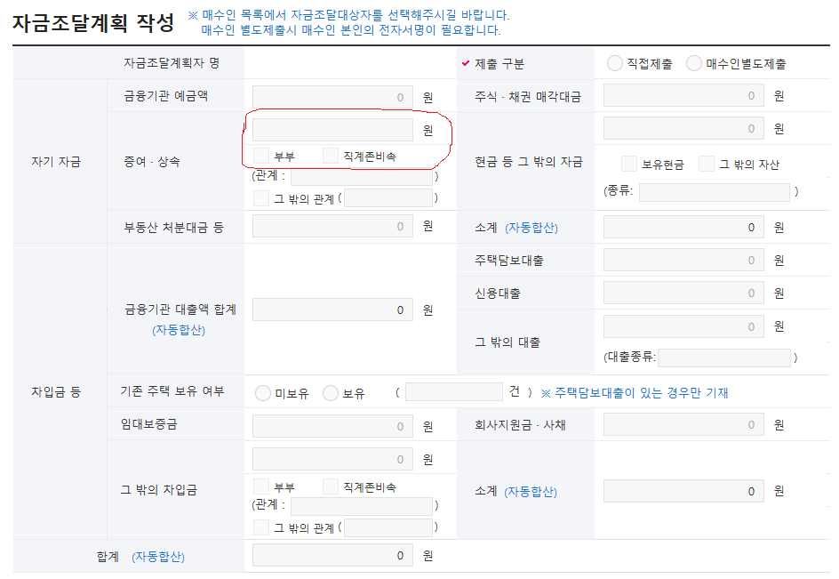 (빨간 선으로 표시된 곳에 입력해야 할 금액)