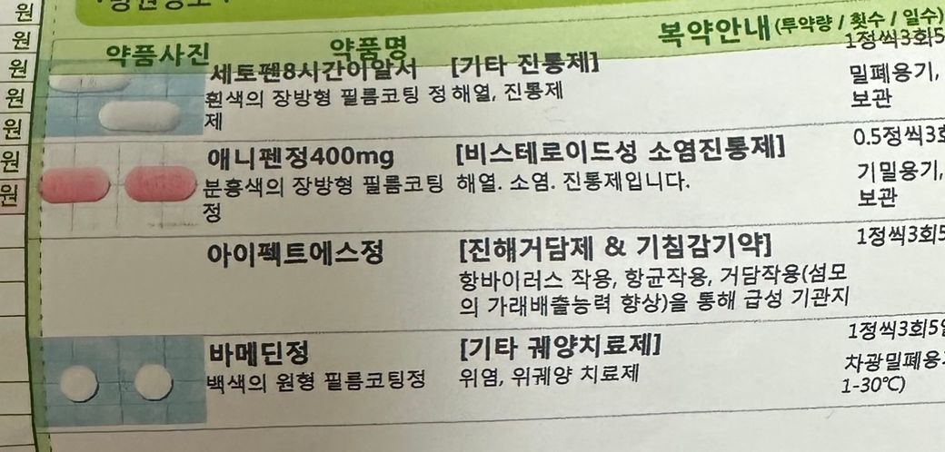 어제 5일에 코로나 재감염 확진 판정을 받고 약을 복용하니 심하던 인후통은 많이 호전되었습니다. 근데 약 복용하고 인후통이 사라지자 서서히 복통이 있더니 밤에는 잠을 못 잘 정도로 심하게 아파서 너무 힘들었어요. 혹시 설사를 하려나 하고 화장실을 가도 나오지 않고 지금은 복통이라기보다 위통증이 심한 것 같은데 검색해보니 애니펜정이 위 통증 유발시킬 수 있다는데 혹시 약 부작용일까요? 애니펜정만 빼고 먹어도 될까요? 혹시 몰라서 처방약 사진