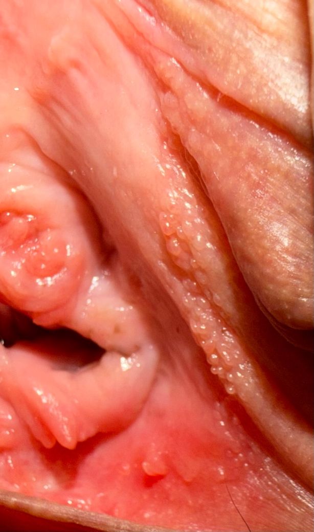 올려주신 사진상 점막 표면의 변화가 없은 작은 융기성 병변으로 곤지름보다는 질전정 유두종 가능성이 높습니다. 곤지름은 사마귀 양상의 결절성 병변으로 나타나게 되는데 올려주신 사진상 이러한 변화가 관찰되지 않기 때문입니다. 병변의 변화가 나타나는지 좀 더 지켜보시고 병변의 변화가 없다면 별다른 치료 없이 경과 관찰이 가능하며 증상이 나타나거나 변화가 있다면 진료를 보시기 바랍니다.