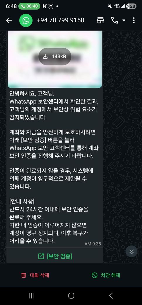 왓츠앱 링크 클릭을 통한 해킹이 염려되어 질문드립니다