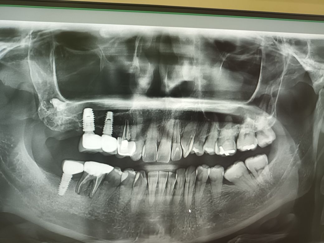 말씀하신 부분 쪽 x-ray 에서 하얗게 보이는 물질이 있습니다. 이것이 뼈이식 등으로 채워진 것인지, 치아 뿌리를 발치하고 남아 있는 잔존치근인지에 대한 판단이 필요합니다. 만약에 잔존 치근이 남아 있고 해당 부분이 상악동 안으로 들어가 있다면 이것을 제거하는 수술을 해야 합니다. 다만 지금으로서는 정확한 판단이 어려우므로 해당 치과가 아닌 다른 치과를 방문하여 x-ray 검사를 한 번 해보시길 바랍니다.