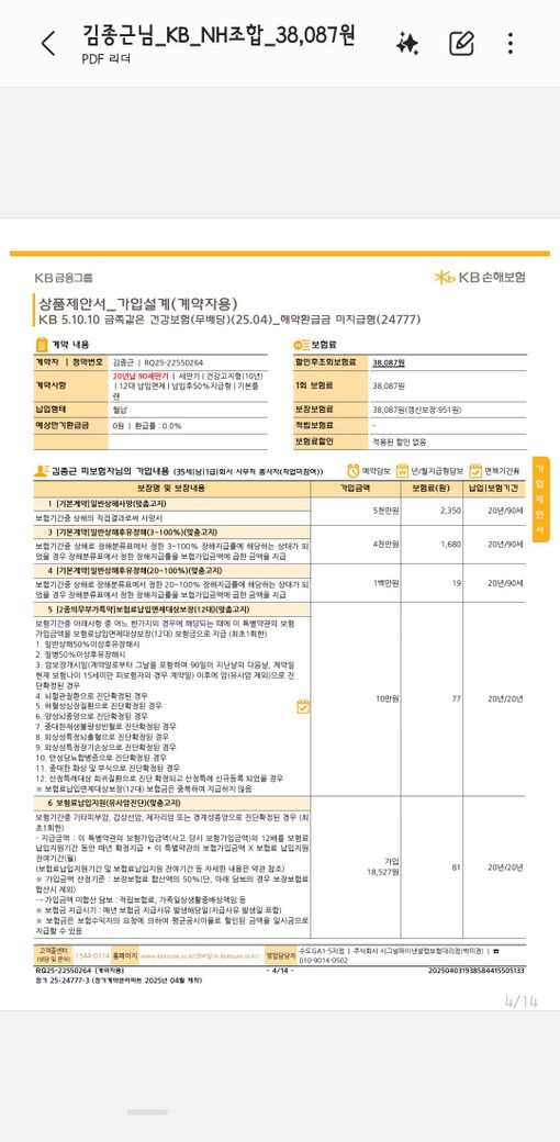 필수 가입 진단비는 농협으로 수술비는 KB로 구성을 한것으로 보입니다.