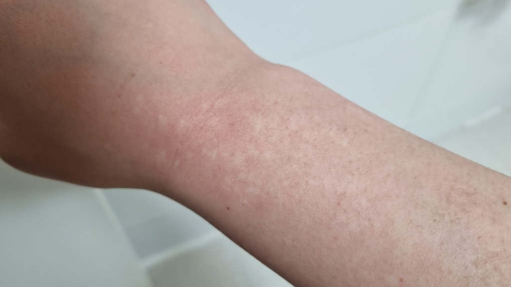 양쪽 손목에 흰 반점같은 것들이 있는데요.