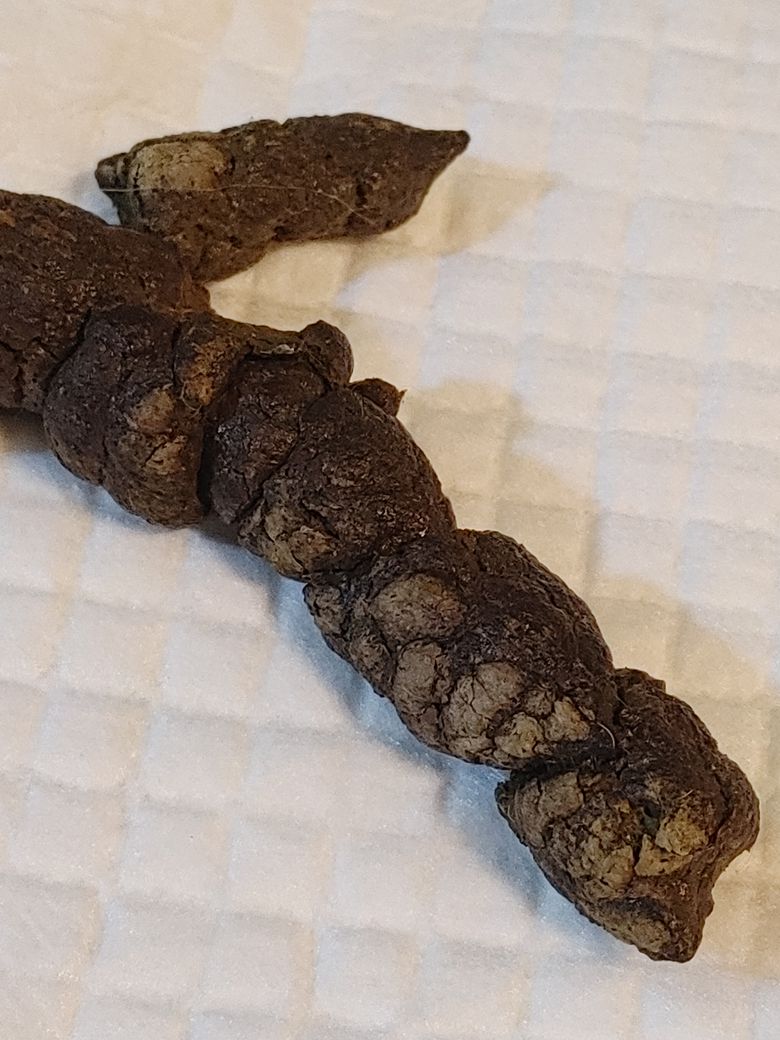 매우매우 건강한 대변입니다^^ 저것은 섬유질이나 소화되지 않은 것들이 수분을 뺴았겨 생긴 자연스러운 변의 일종입니다. 걱정 안하셔도 됩니다.