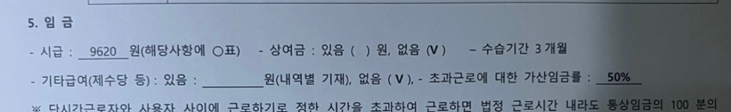 없음에 표시된 것은 지급되는 급여에 수당이 포함되어있지 않음을 표기한것으로 보입니다.