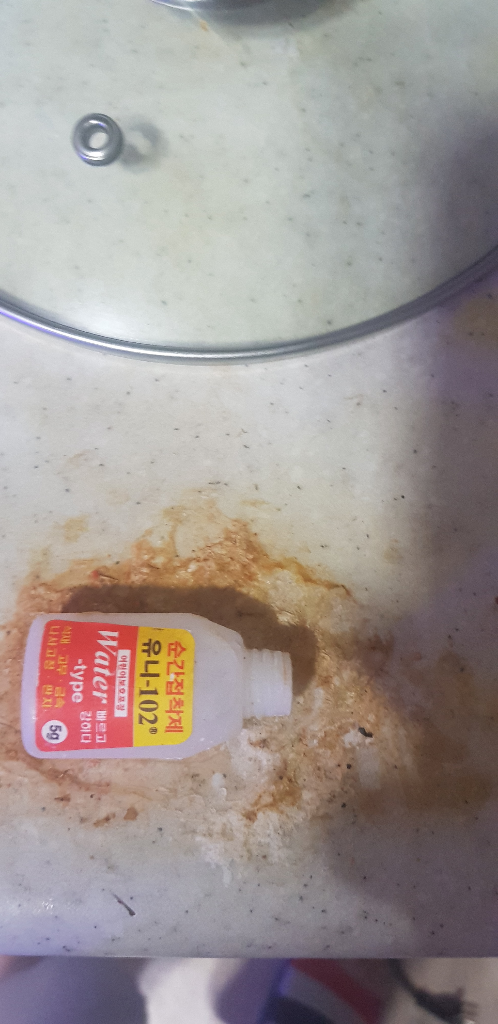 싱크대에서 뭐붙였는데 쓰러진지 모른채 출근했다가 내용물이 다흘러나왔고 통이랑 싱크대랑 본드범벅으로 붙었습니다 답이 없어서 일주일방치했는데 물때도끼고 이거대체 어떻게 재거해야할까요 꿈쩍도 안해요