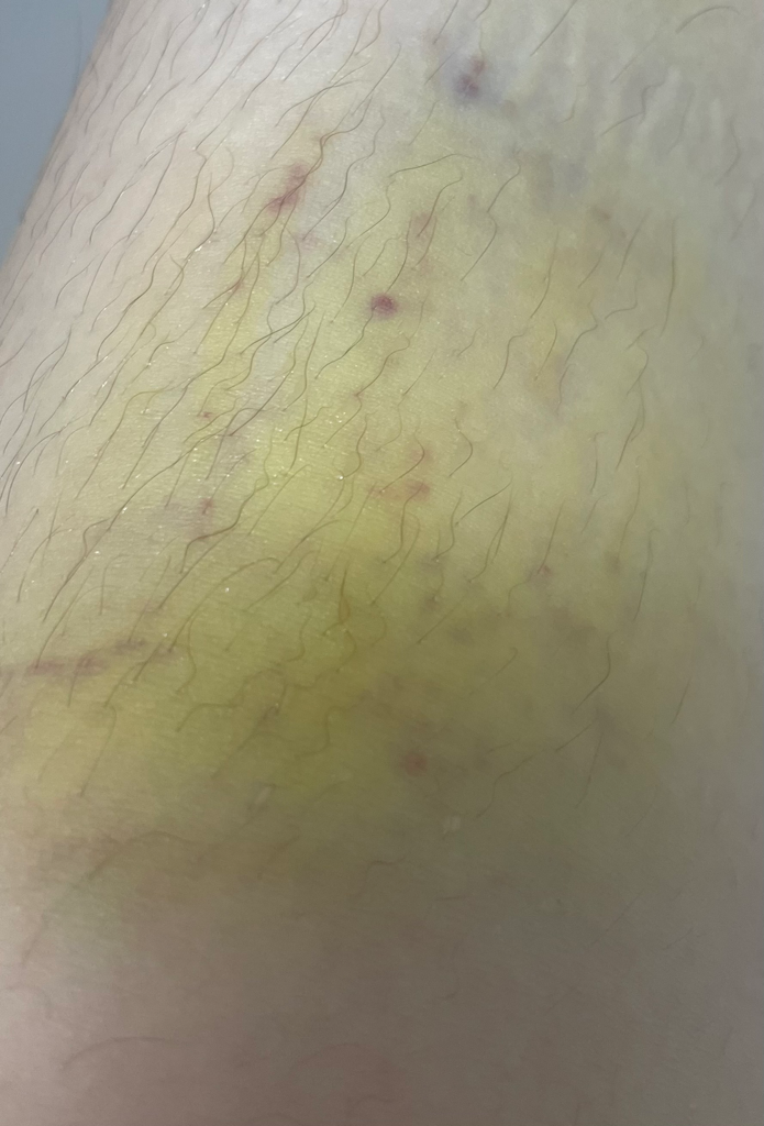 무릎에 멍이 졌는데 거의 호전이 된상태로 보입니다.